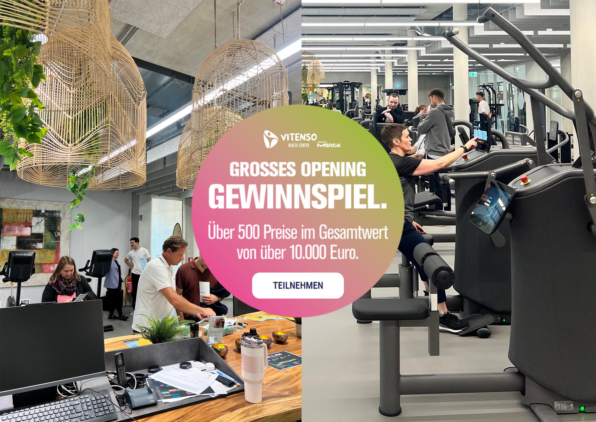 „Premium-Fitness powered by Merck“ im VITENSO Health Center bietet eine Vielzahl an Trainingsmöglichkeiten, darunter medizinisches Fitnesstraining und Gesundheitstraining, ergänzt durch ein umfangreiches Kursprogramm.